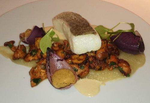 Lieu jaune basse température, purée d'oignons et champignons sauvages. Une cuisson du poisson parfaite et une explosion de parfums et de saveurs !