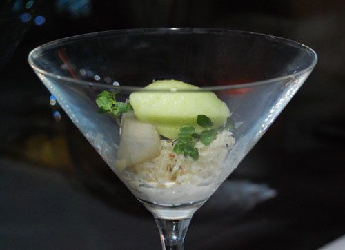 Le trou normand version Vegas avec du crabe accompagné d'une crème à la vodka et au mascarpone et d'un sorbet yuzu. Super frais, crémeux et acidulé avec le goût incomparable du crabe.