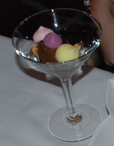 Quelques mignardises en pré-dessert avec une mini-tarte au citron, des myrtilles confites... A l'image de la mise en bouche, sans grand intérêt !