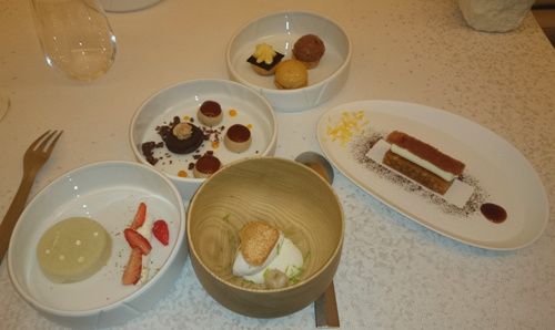 A la manière du "Grand Dessert Pierre Gagnaire", Thierry Marx propose une compilation de desserts baptisée "Sweet bento & fraîcheur coco" autour de 5 préparations sucrées.