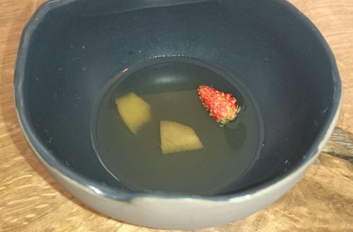 Sirop de gingembre et fraise des bois. Un sirop parfumé qui réchauffe bien pour finir le repas !