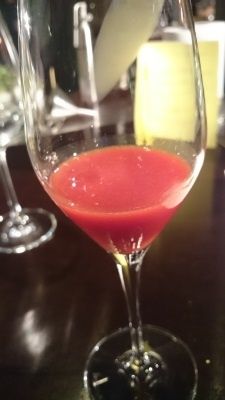 Smoothie de Bissap revisité (fleur d'hibiscus, mangue et 7 épices africaines). Fraîcheur, parfums, exotisme... juste magnifique avec malheureusement un goût de trop peu et un piquant qu'on aurait aimé un peu plus poussé !
