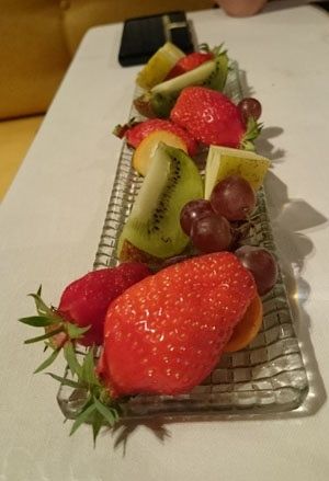 Un surprenant final pour ce genre de table que ces fruits frais que l'on prend plaisir à picorer pour terminer avec légèreté et fraîcheur.