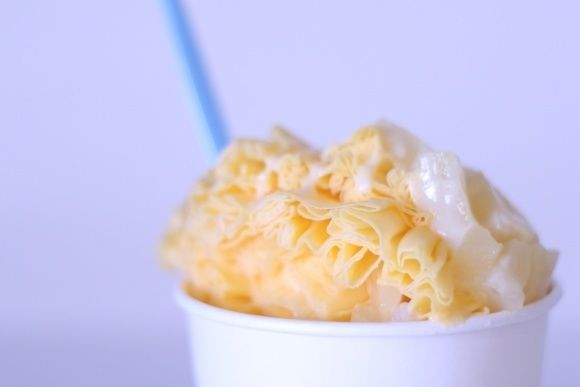 Snowflake Shavery : une version américaine de l'ice roll thaïlandais avec la crème glacée qui rencontre la shaved ice, cette glace hawaienne constituée de copeaux provenant d'un bloc de glace recouverts de sirop. Avec la crème glacée on obtient une texture légère et rafraîchissante. Tout est fait à partir d'ingrédients naturels.